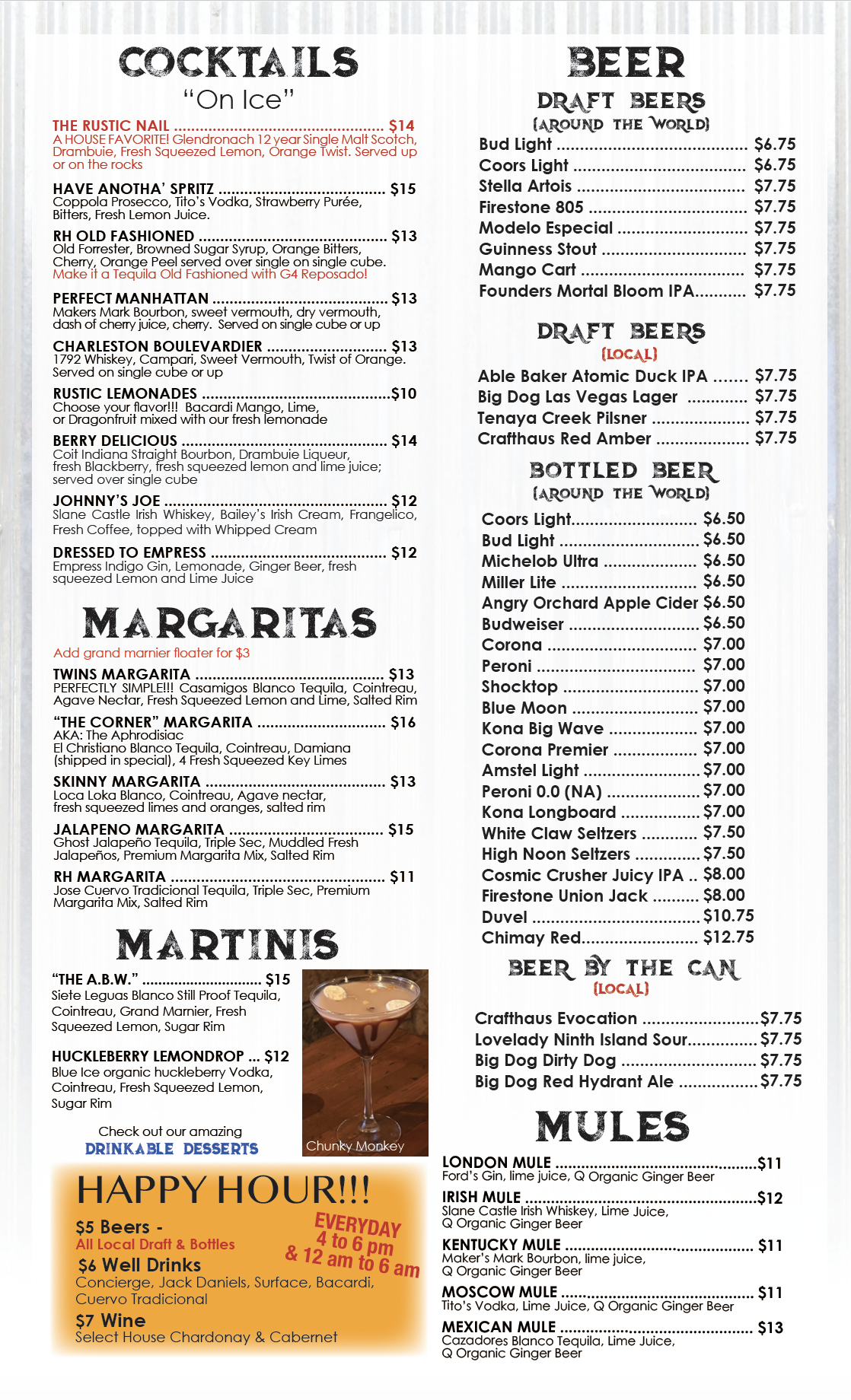 OUR RUSTIC HOUSE MENU