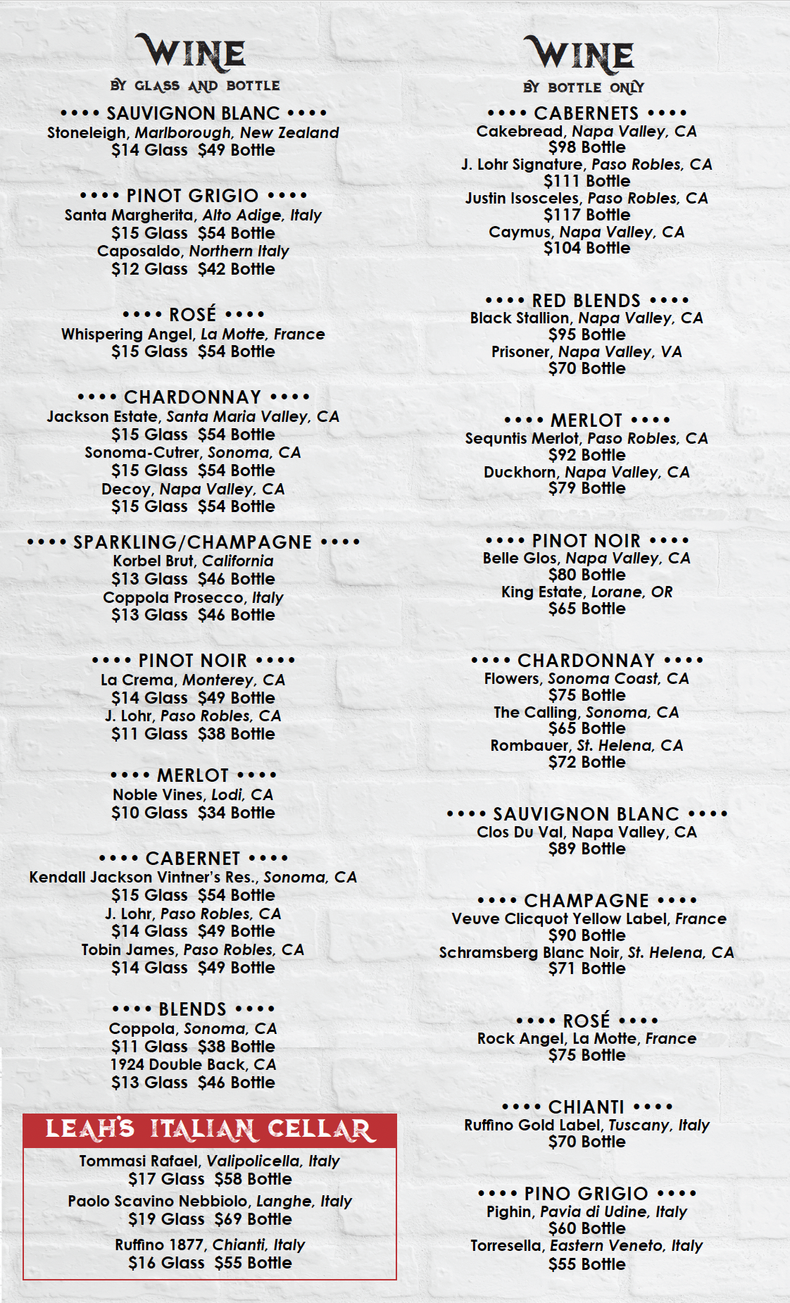 WINE MENUS